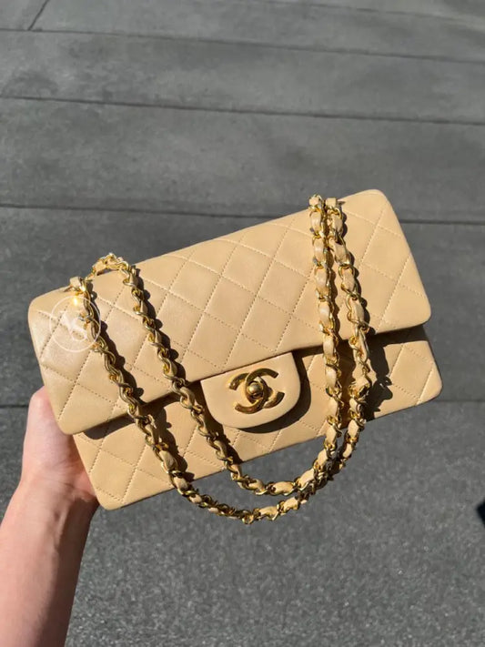 CHANEL Beige Lambskin Classic Quilted Flap Bag Small in 24k GHW