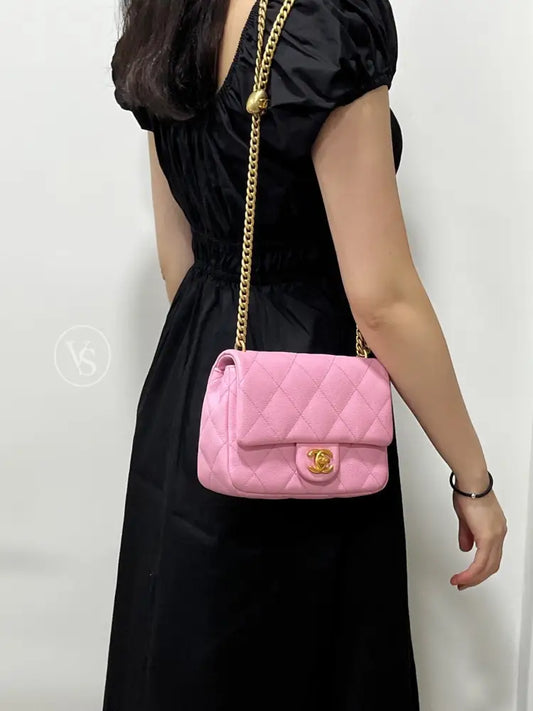 CHANEL Pink Caviar 23P Heart Crush Adjustable Mini Shoulder Crossbody Bag in GHW